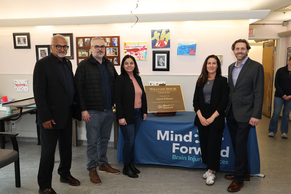 The formal celebration at head office welcomed over 60 staff, clients, board members, and friends. Stephen Dasko, Ward 1 City Councillor, shared the following words: “It was a pleasure to attend the dedication of the plaques for two sites of Mind Forward Brain Injury Services. Longstanding Board Chair, Brad Goegan, was honoured with the naming of the Cawthra location, and Carol Williams, former Executive Director, of the Oakville location.”